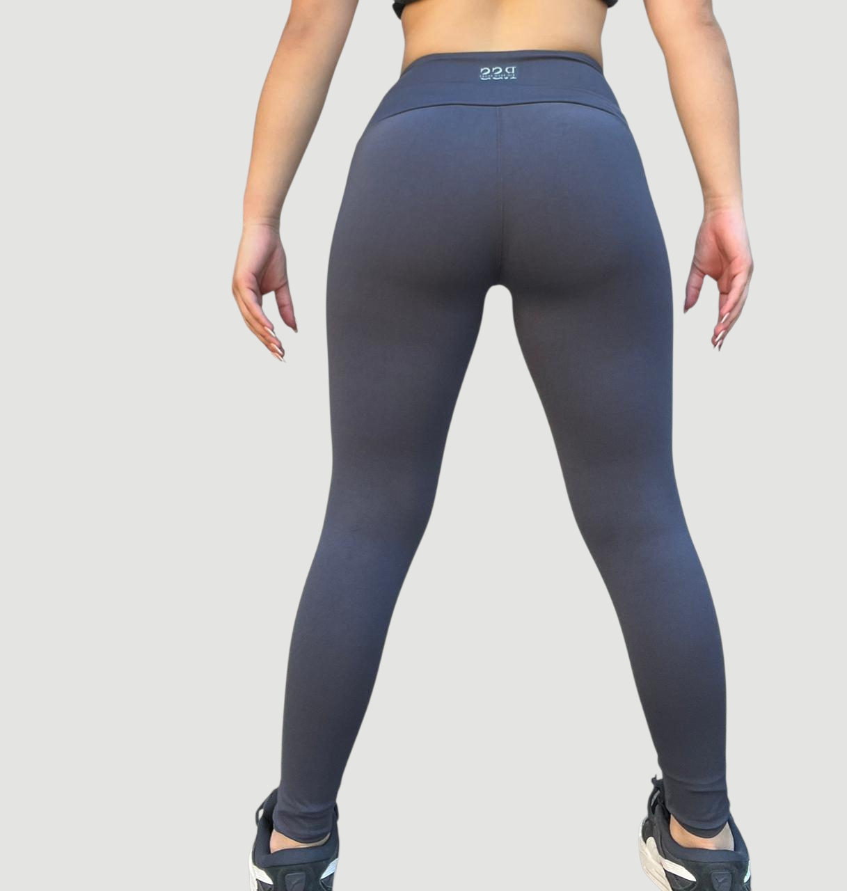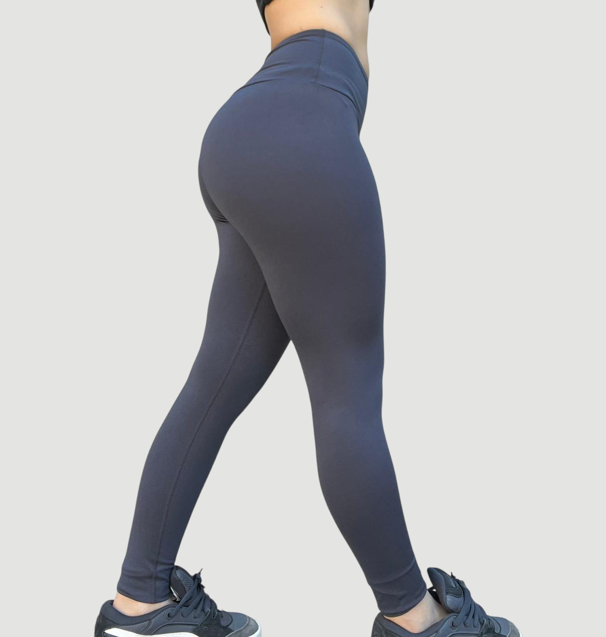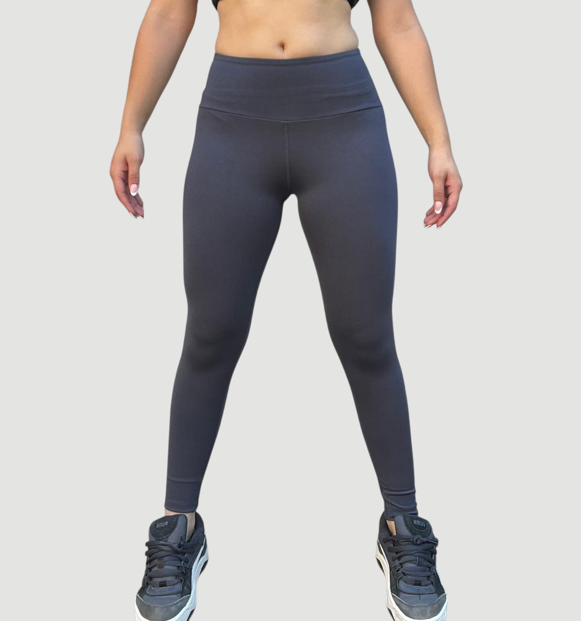 Calza Gris Topo cintura alta lisa. El básico infaltable, versátil para todo entrenamiento.